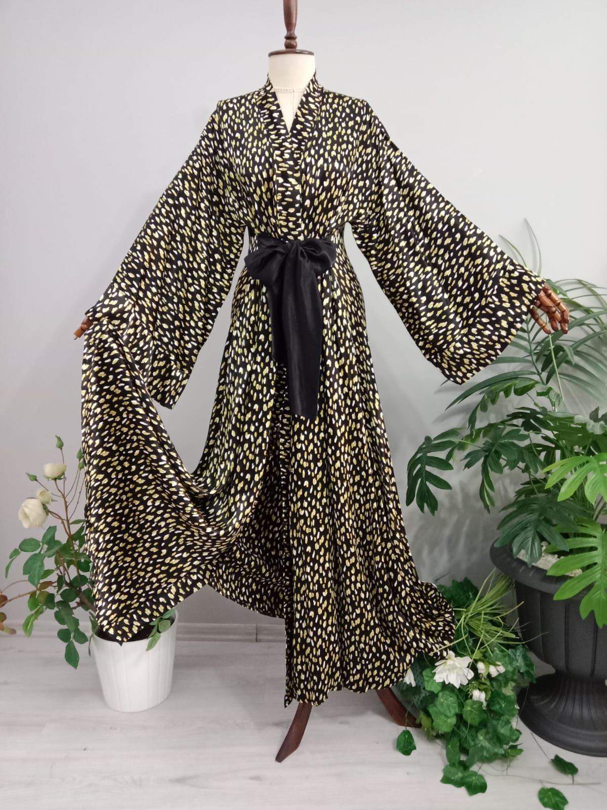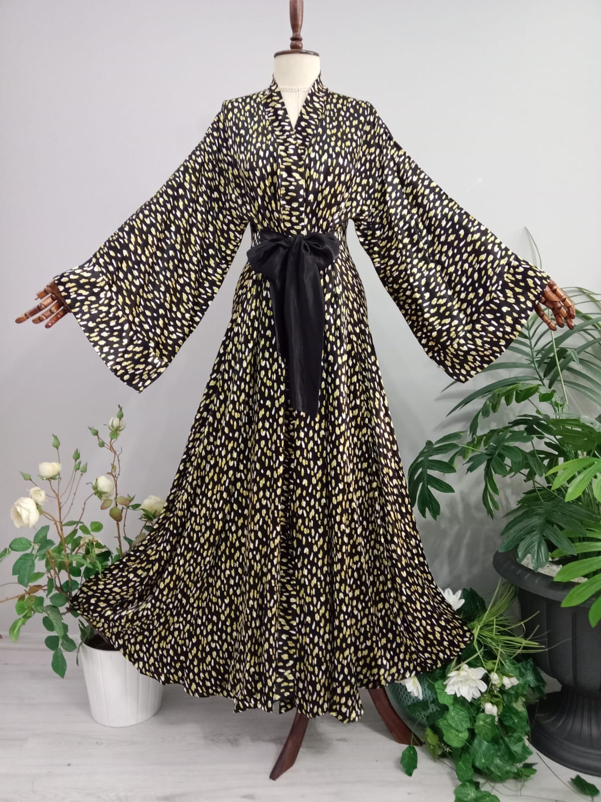 Abaya Floş Satenden Desenli.