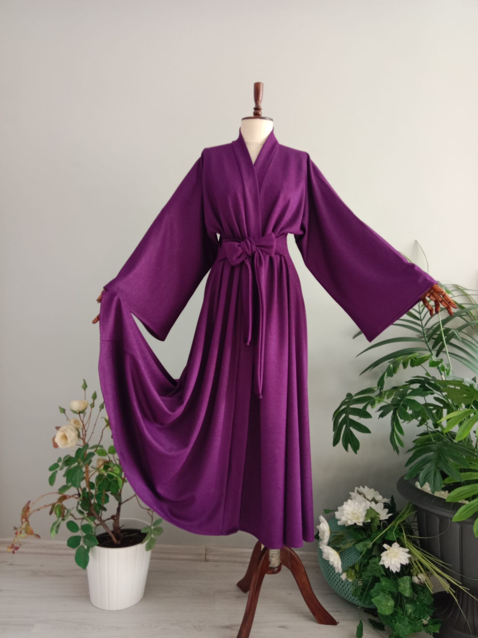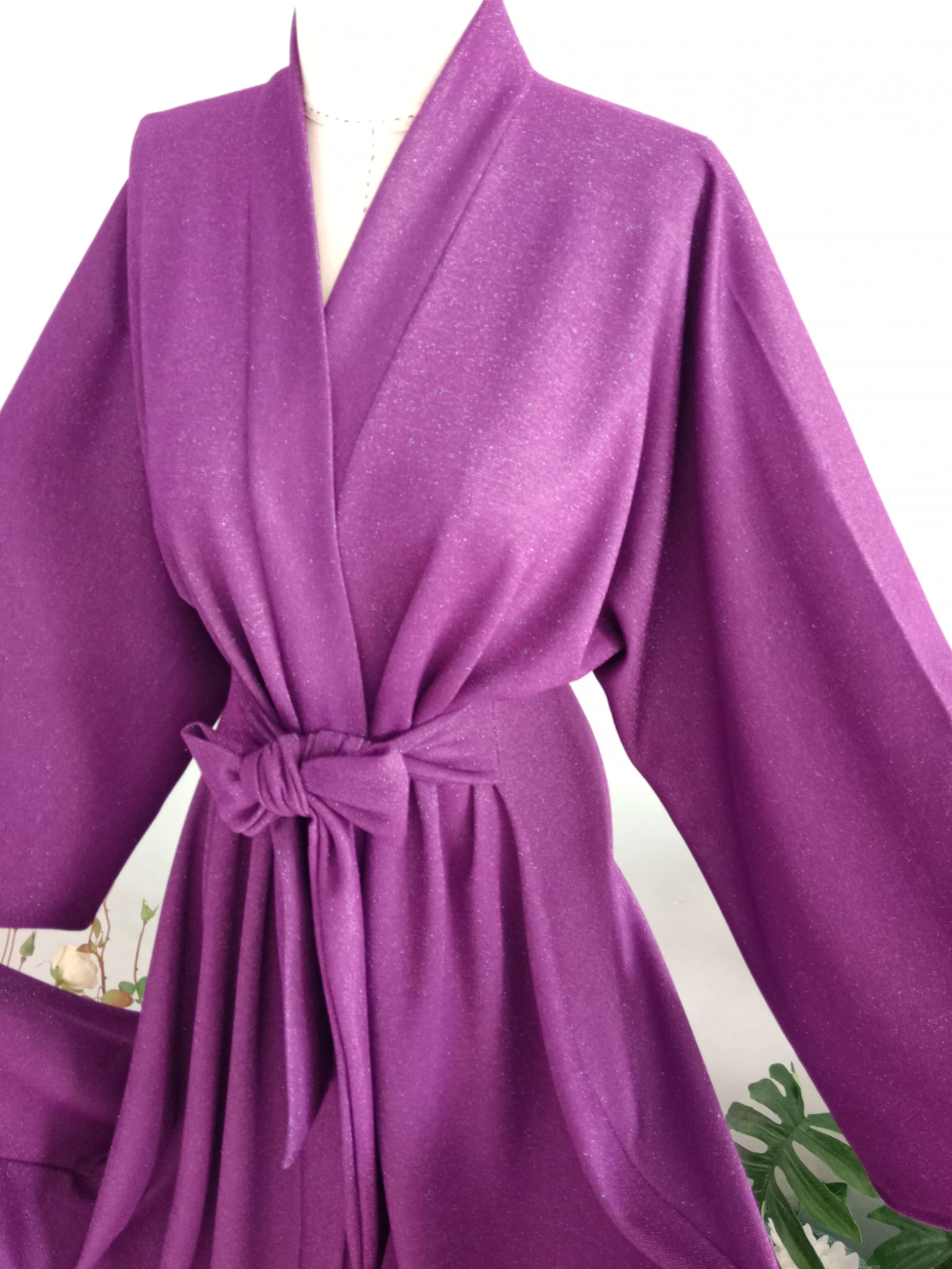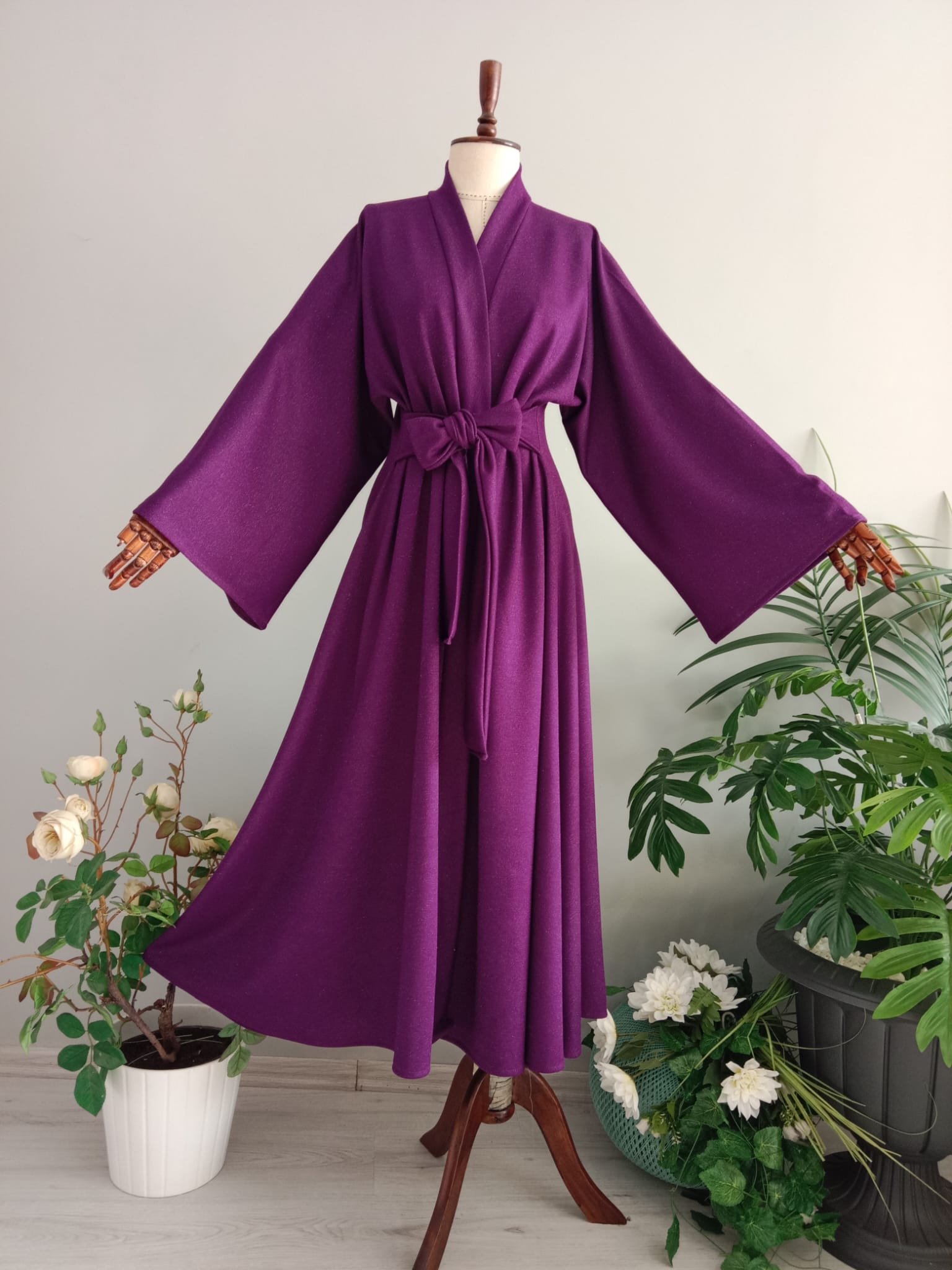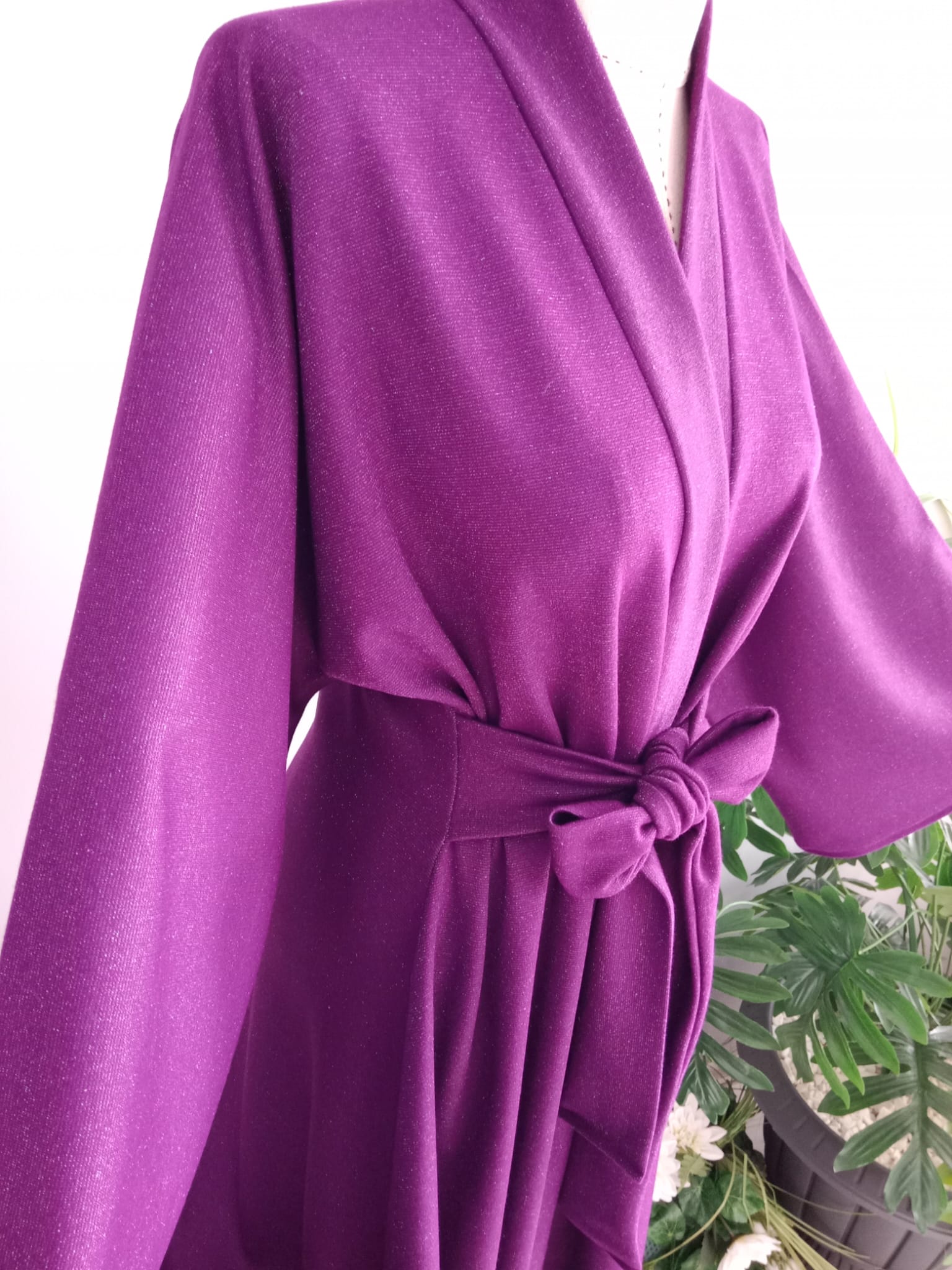 Abaya Hafif Parıltılı Çelik İnterlok Mor Kışlık Kumaştan.