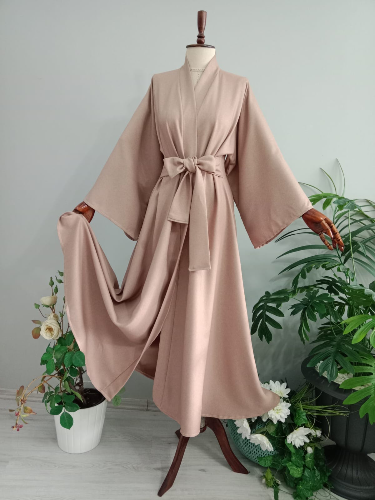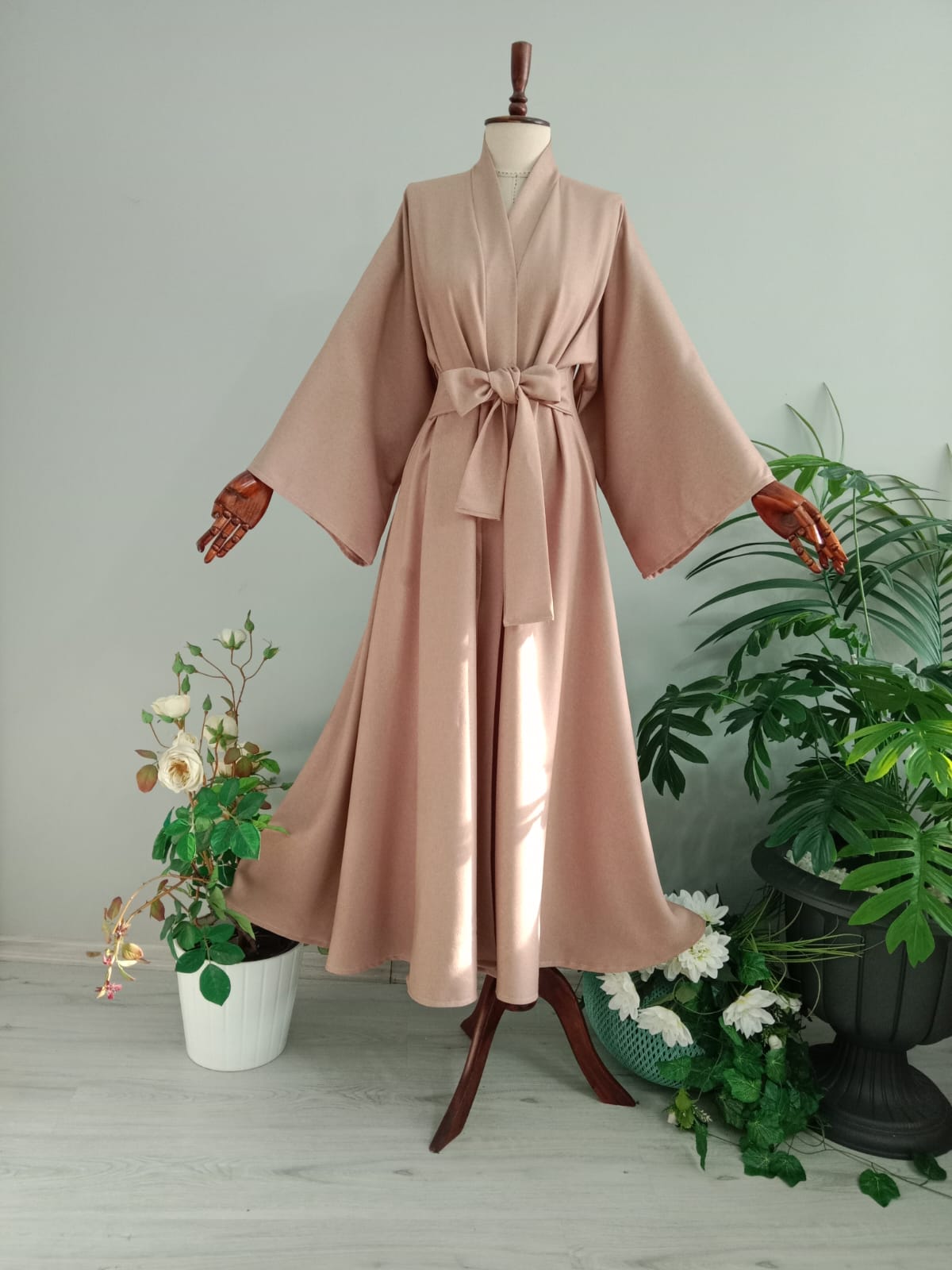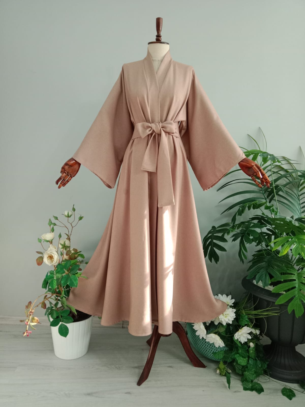 Abaya Kışlık İnce Yün Kumaştan Bej Renkli.