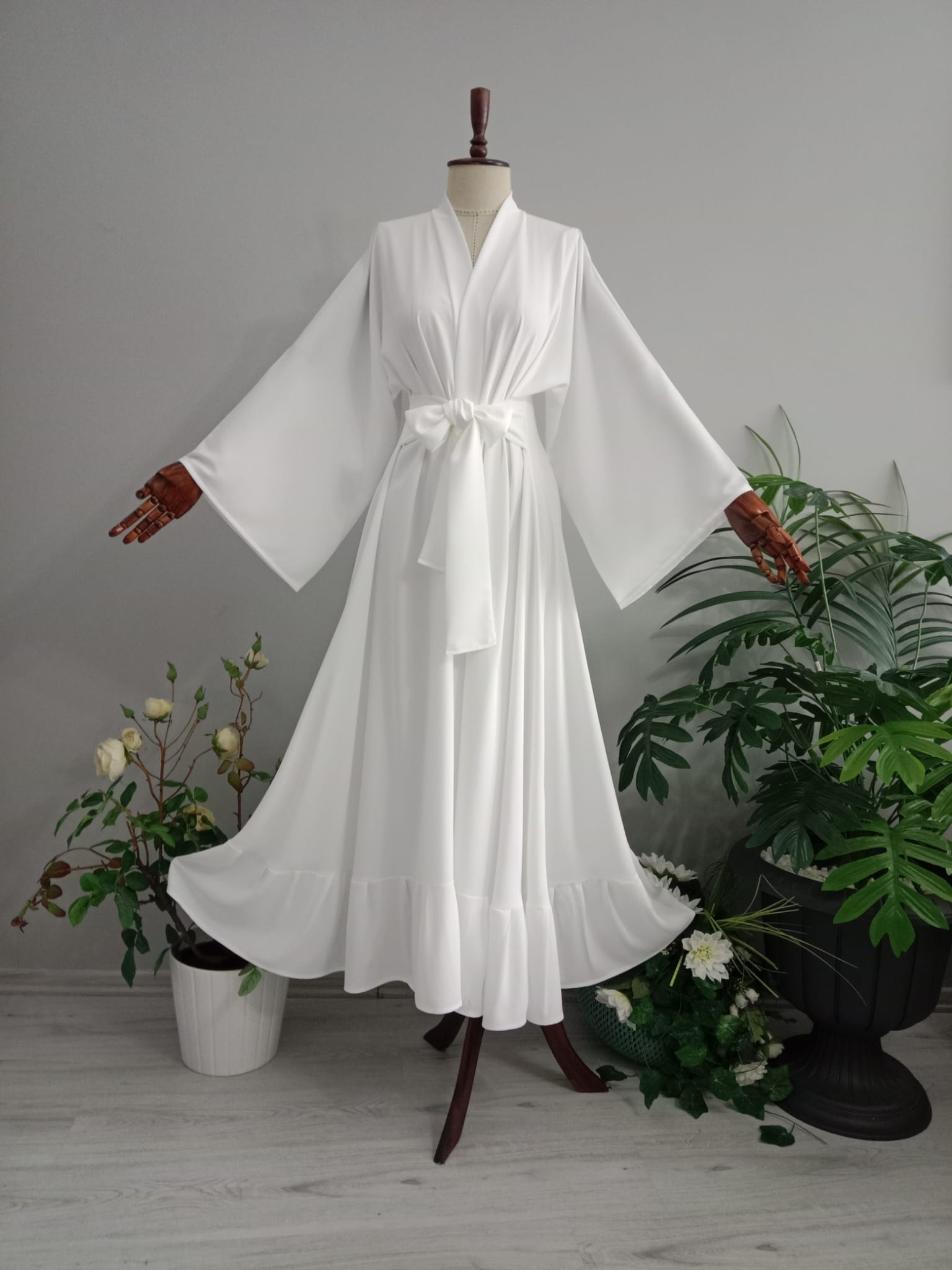 Abaya Krep Kumaştan Beyaz Renk.