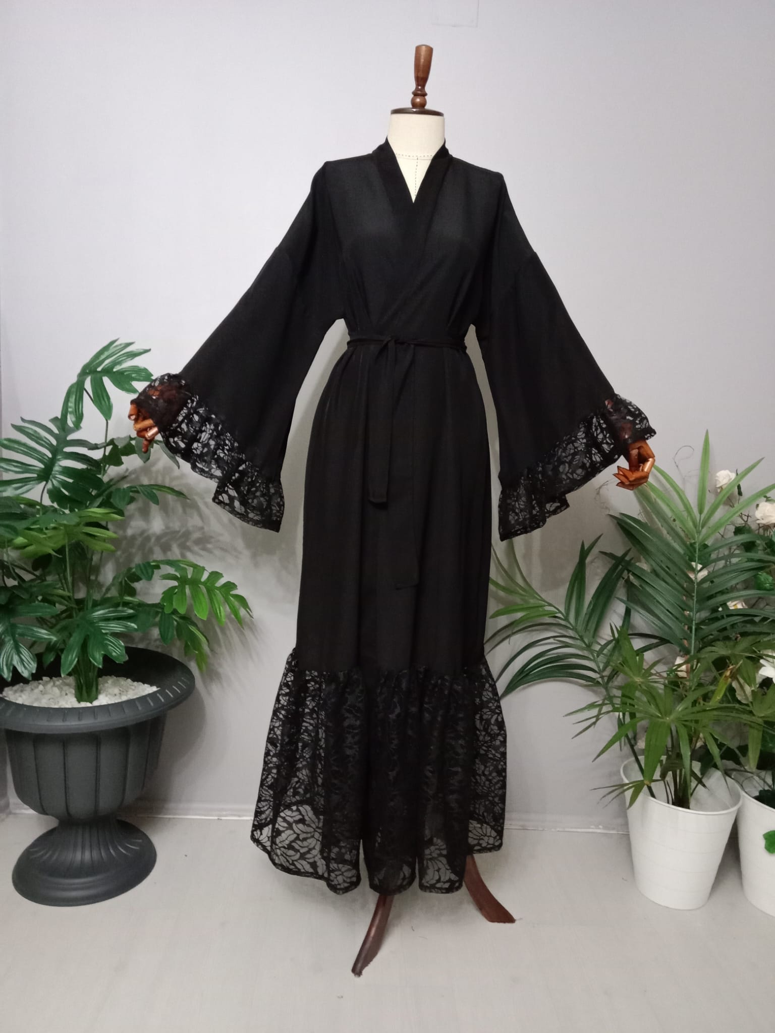 Abaya Maroken Krep Kumaştan Dantel Detaylı Özel Tasarım.