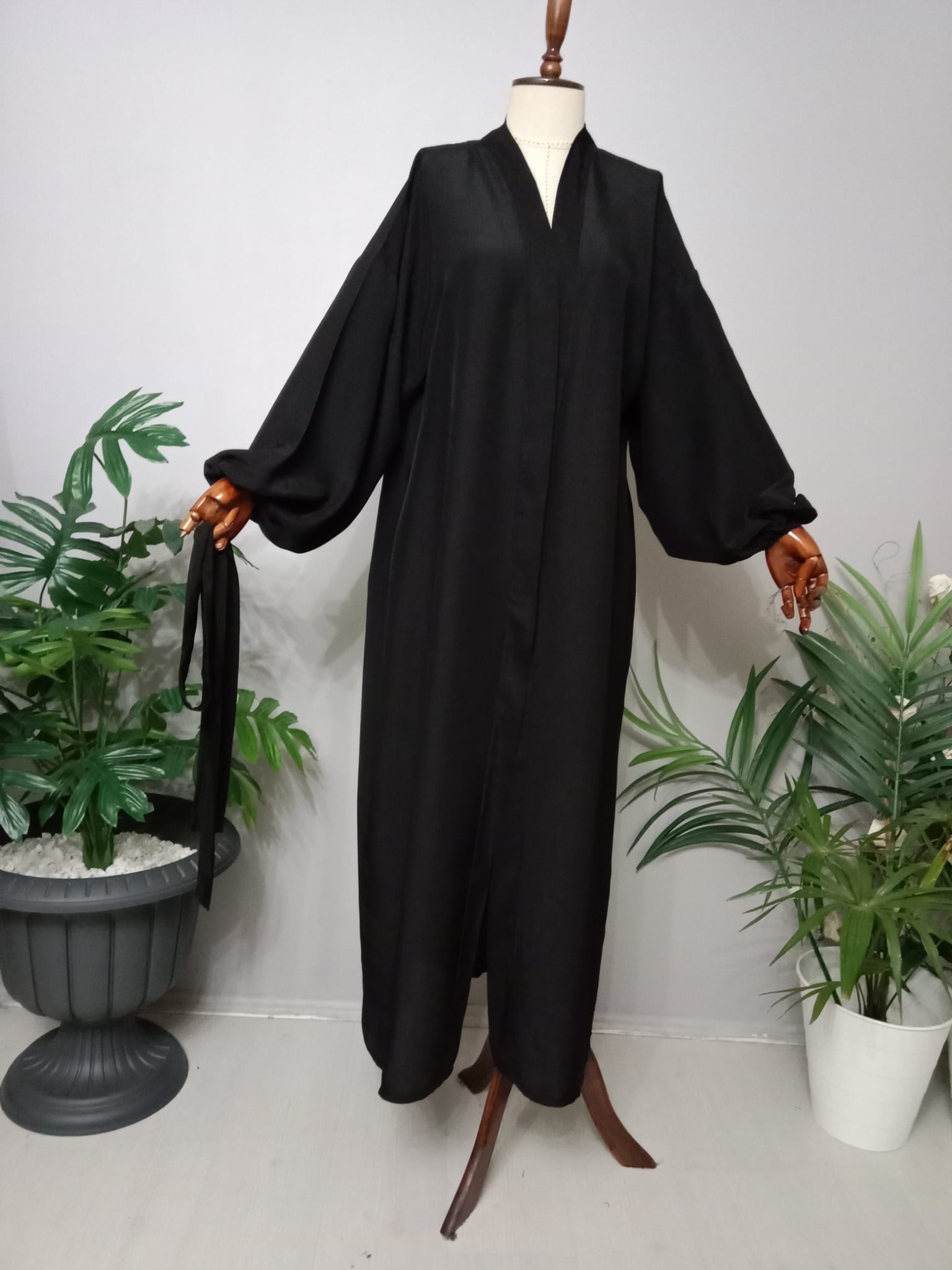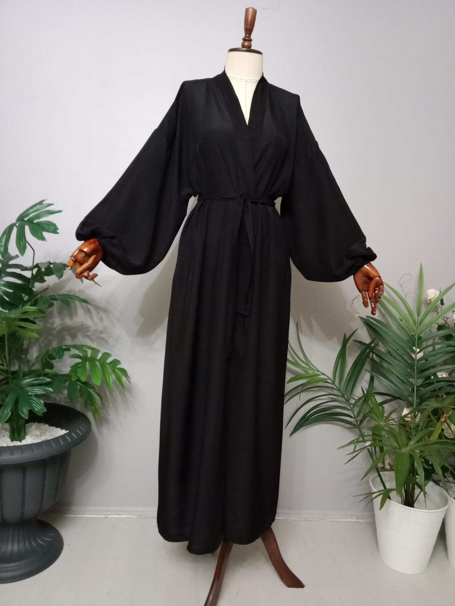 Abaya Maroken Krep Kumaştan Özel Tasarım Balon Kol.