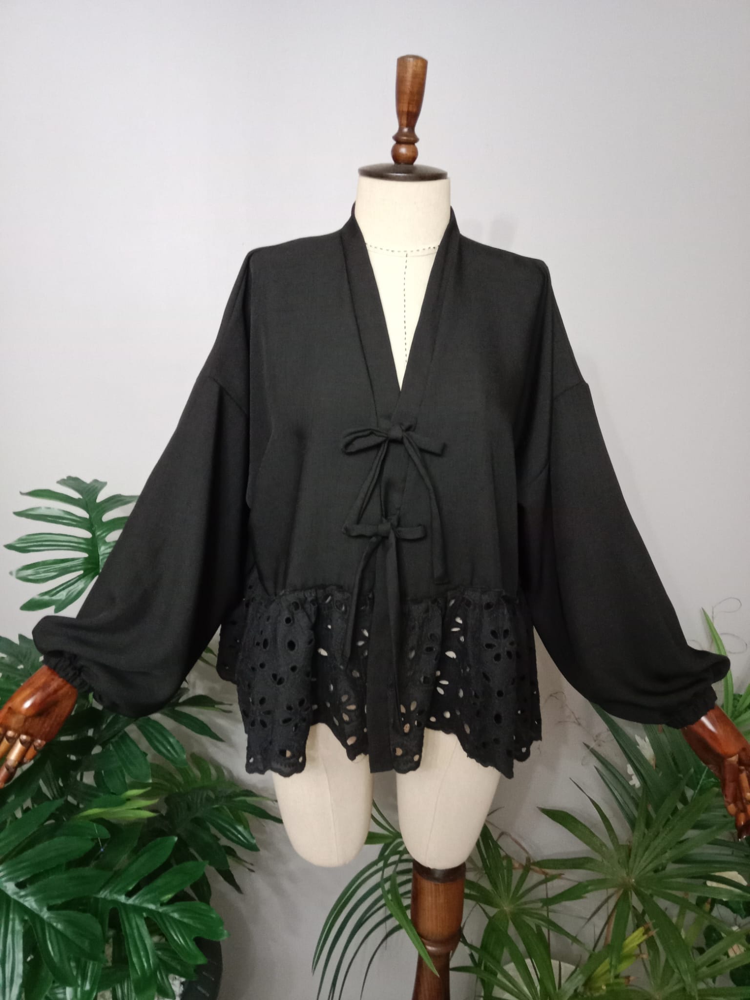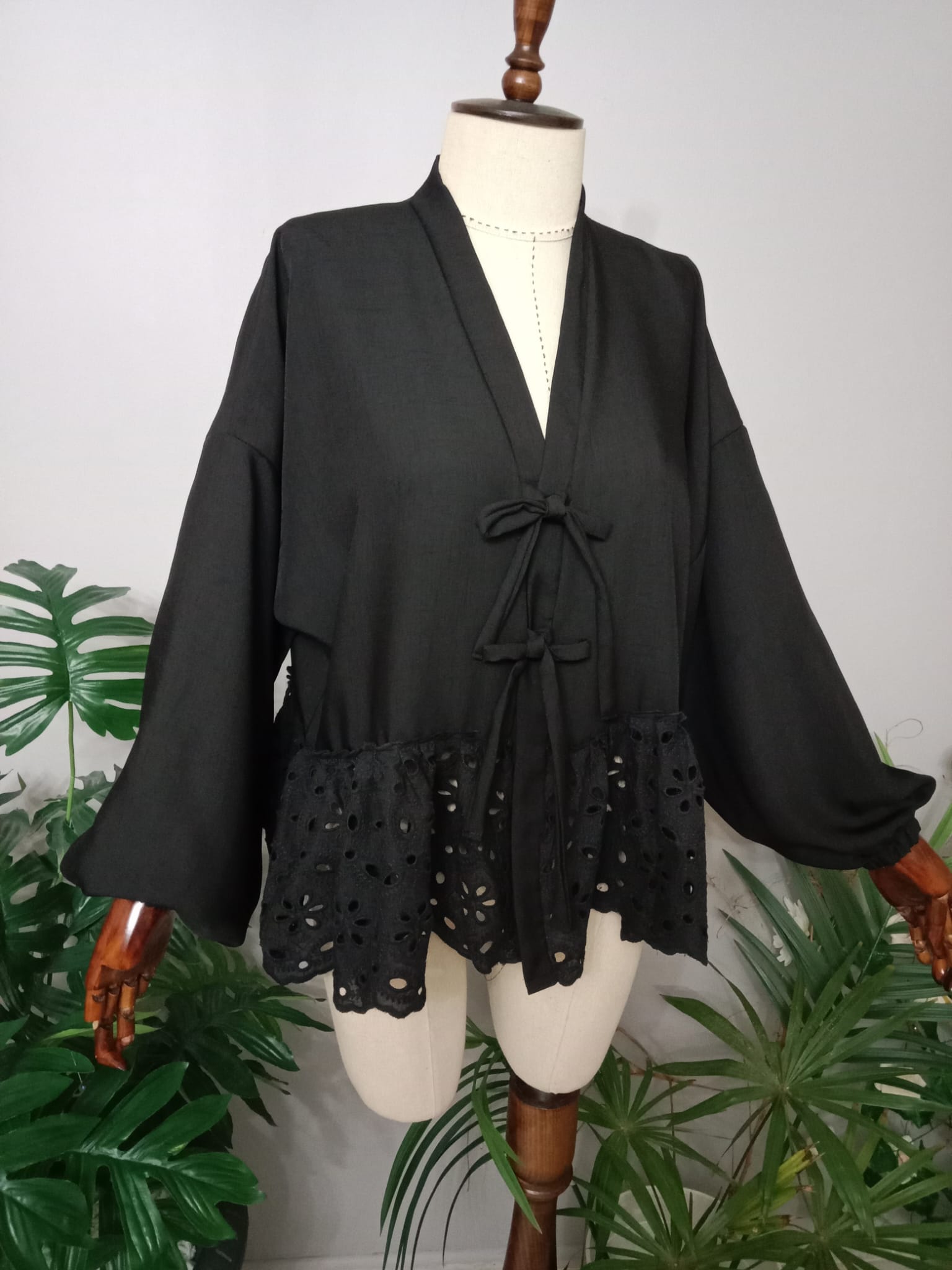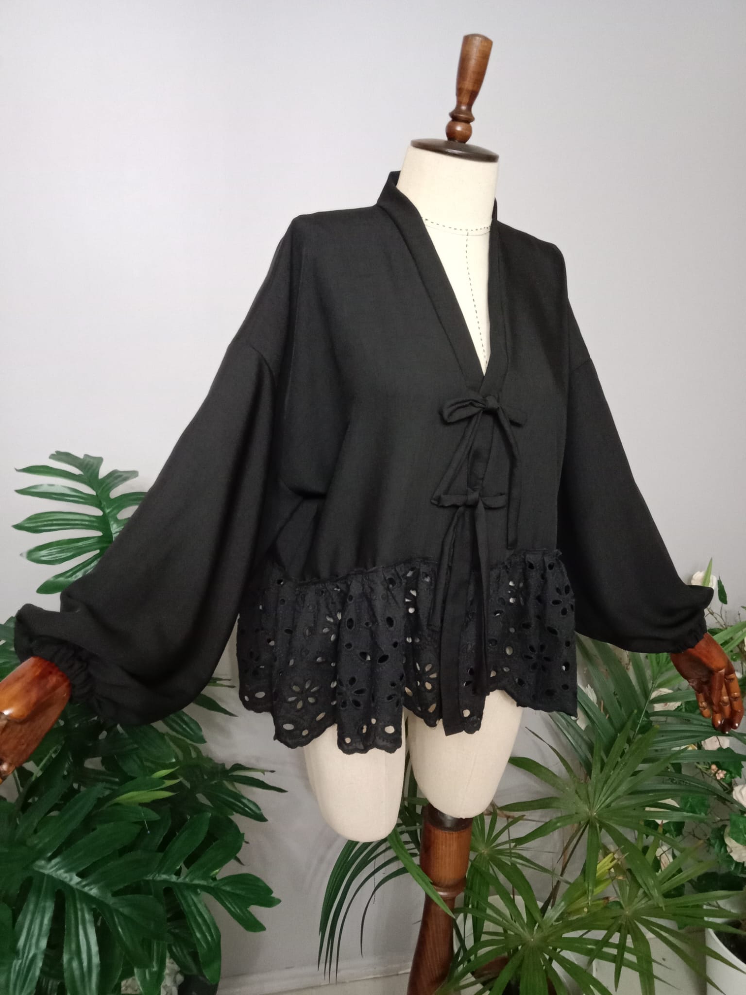 Kimono Fisto Detaylı Keten Kumaştan Özel Tasarım.