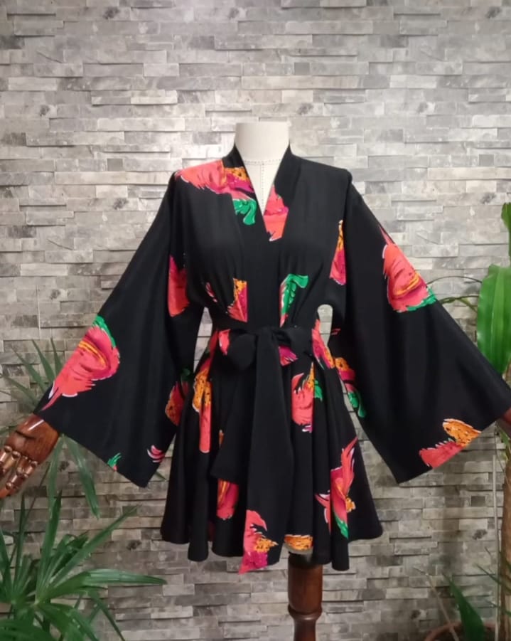 BEDEN: 38 - 42 STANDART BEDENELBİSE BOYU: 82 CMKUMAŞ TÜRÜ: MAROKEN KREPRENK: ÇİÇEK DESENLİKUŞAK: SABİT
