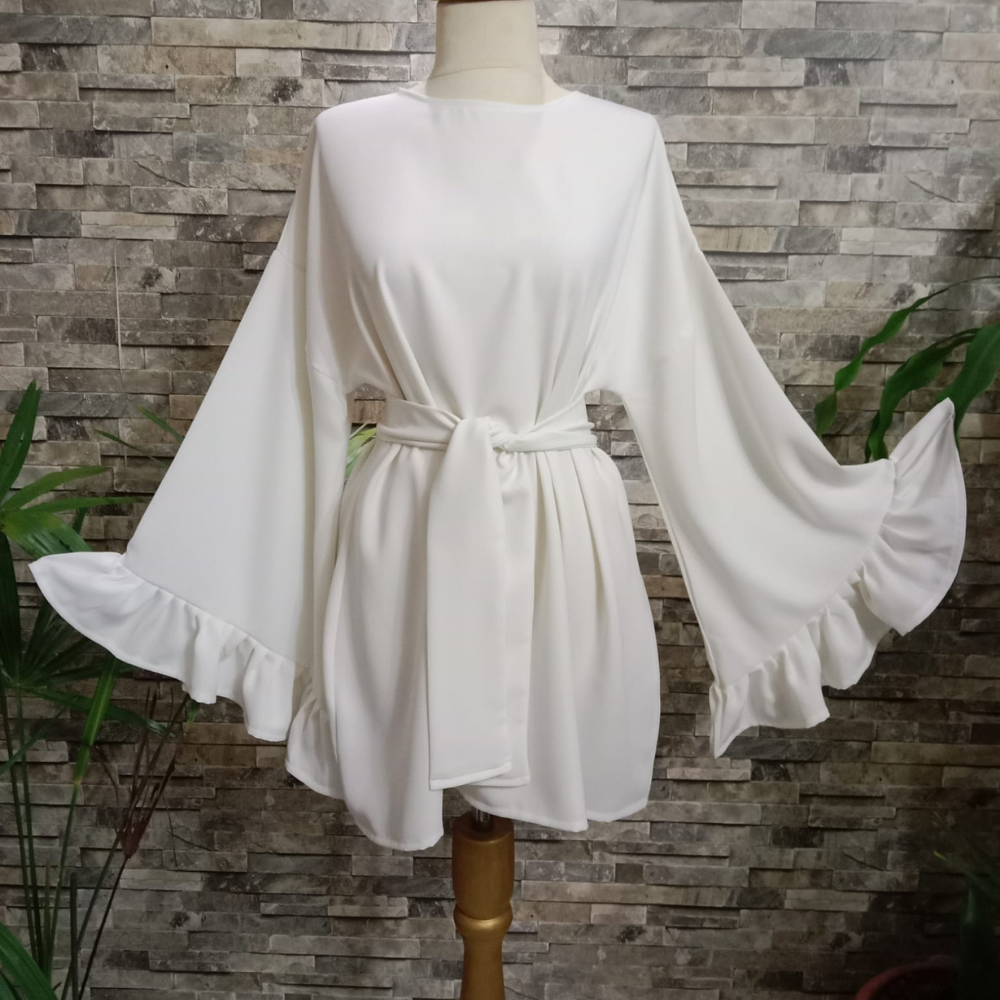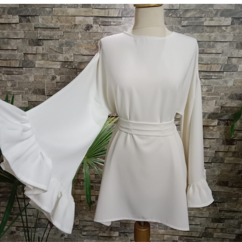 Mevsimlik Krep Kumaştan Kırık Beyaz Tunik