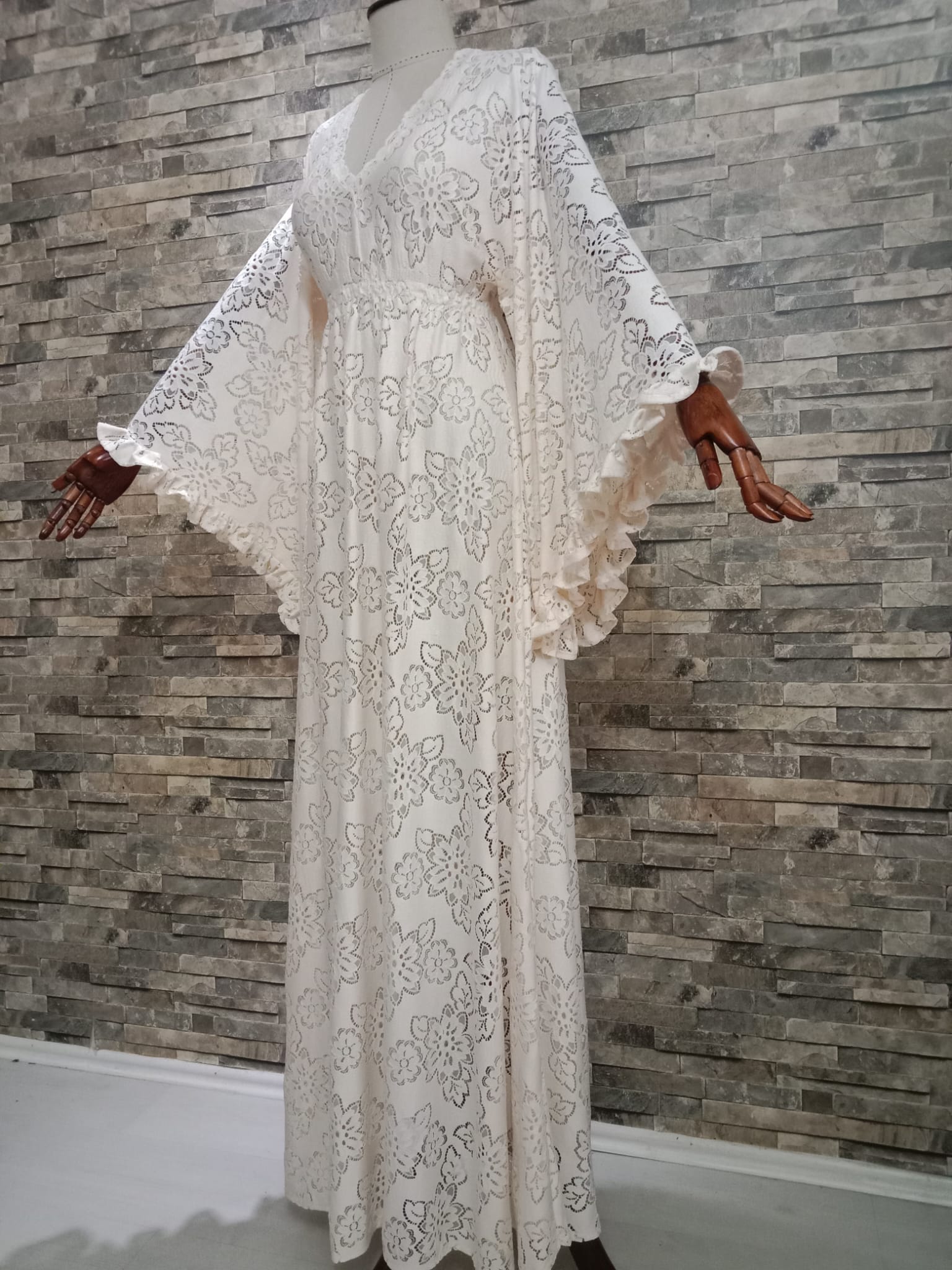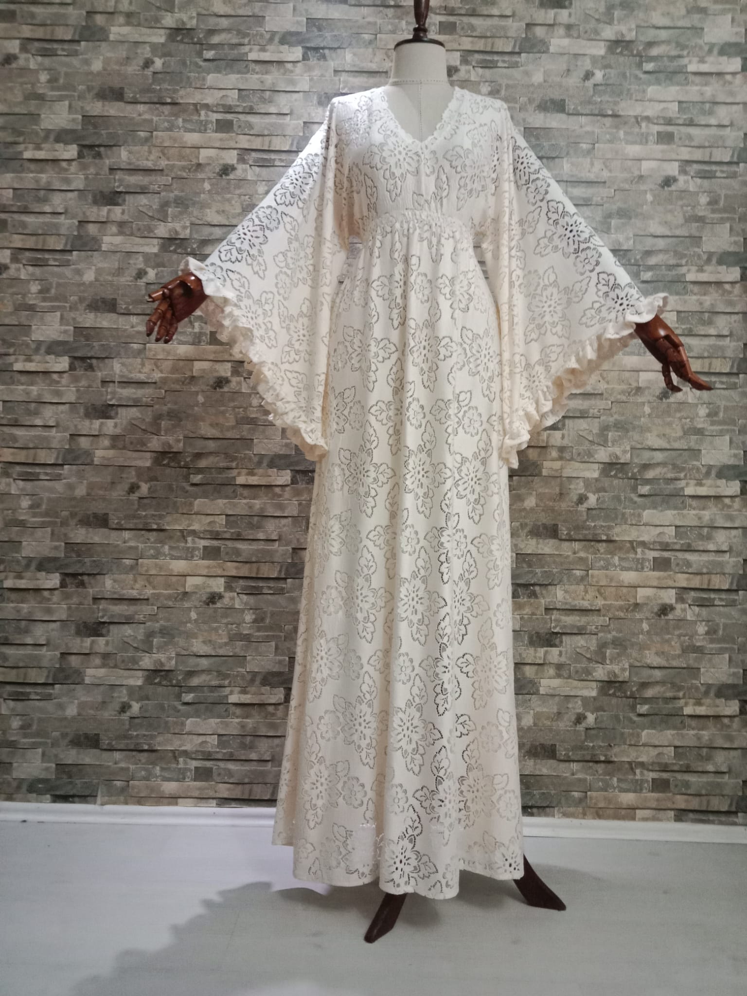 Pamuk Dantel Kumaştan Tasarım Krem Elbise