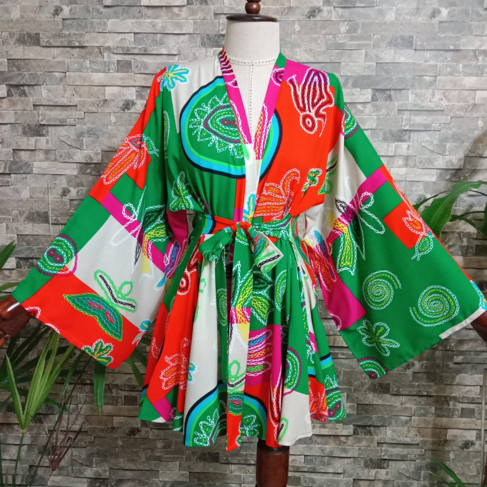 Pamuk Viskon Kumaştan Desenli Kısa Kimono.