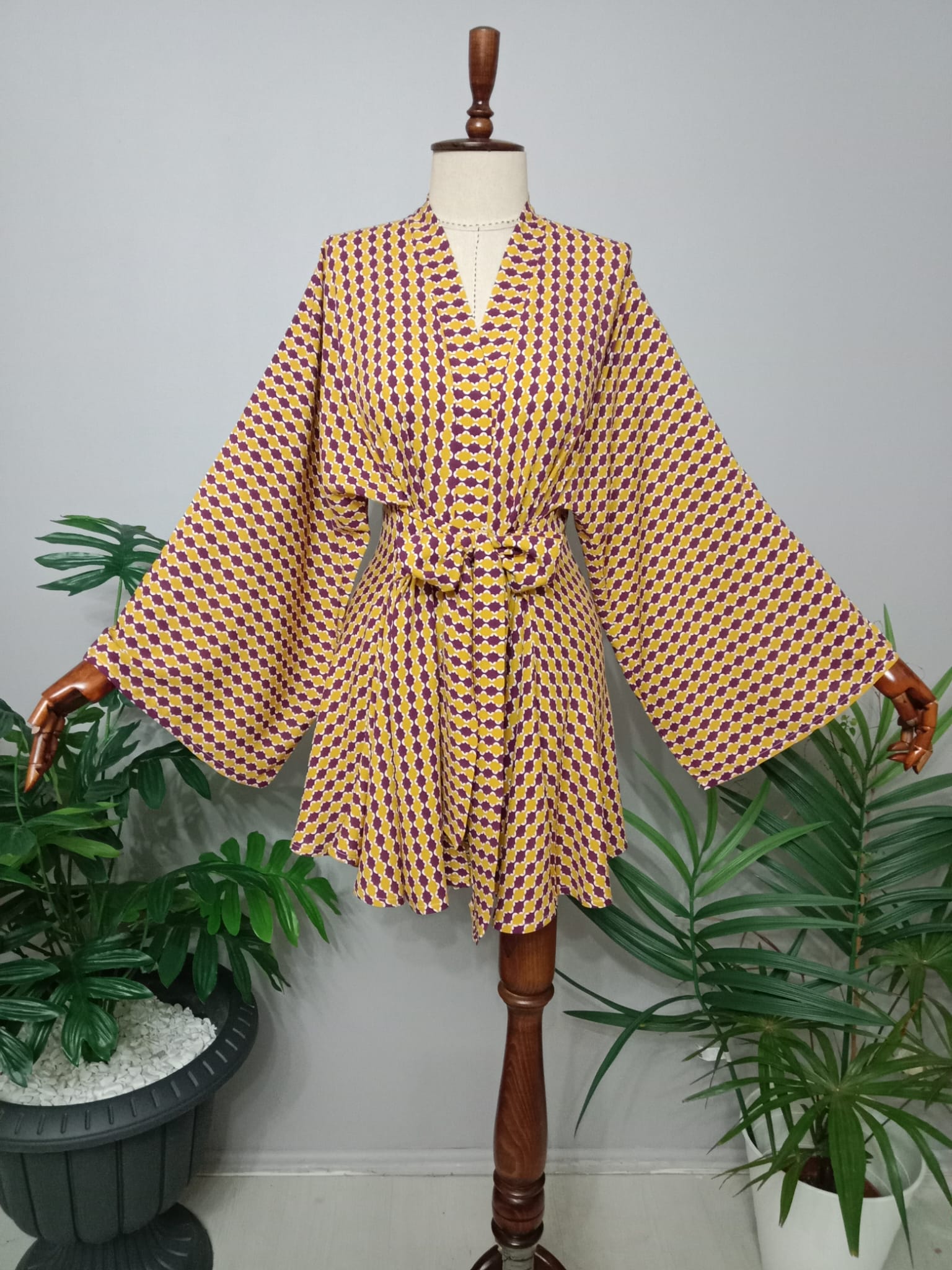 Pamuk Viskon Kumaştan Tasarım Kısa Kimono