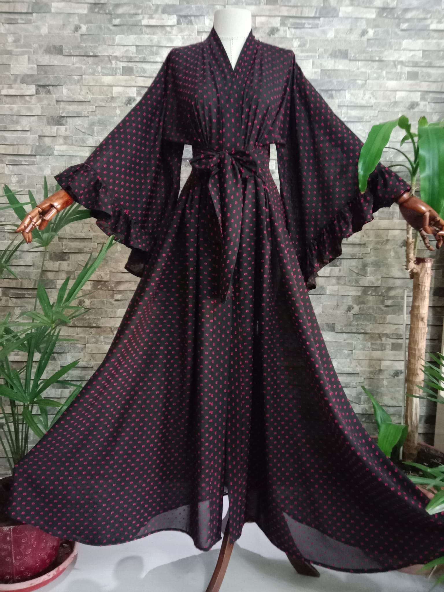 BEDEN: 38 - 44 / 46 - 52 STANDART BEDENELBİSE BOYU: 140 CMKUMAŞ TÜRÜ: ŞİFONRENK: DESENLİKUŞAK: SABİT