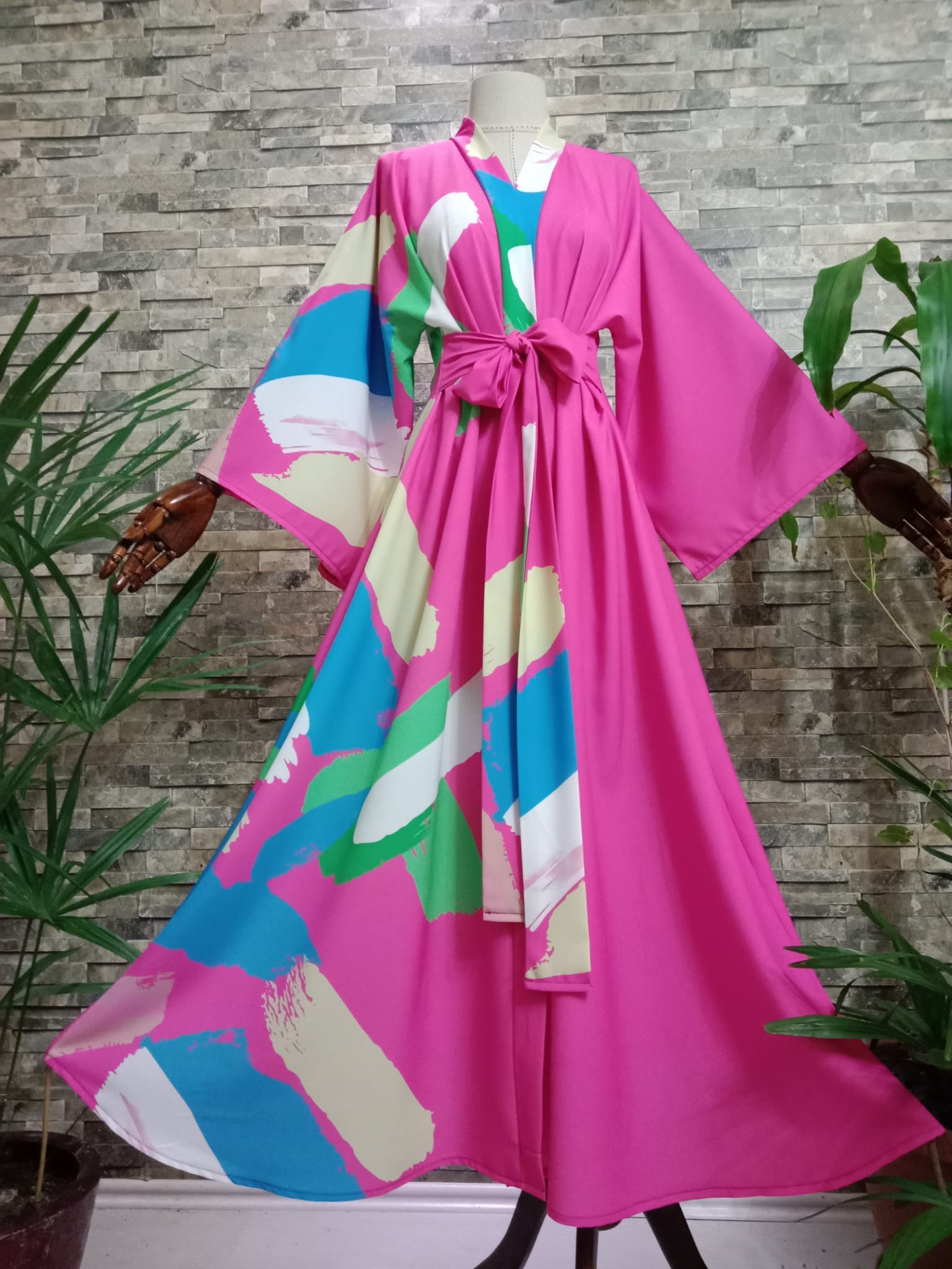 BEDEN: 38 - 44 / 46 - 52 STANDART BEDENELBİSE BOYU: 140 CMKUMAŞ TÜRÜ: BEYMEN KREPRENK: DESENLİKUŞAK: SABİT