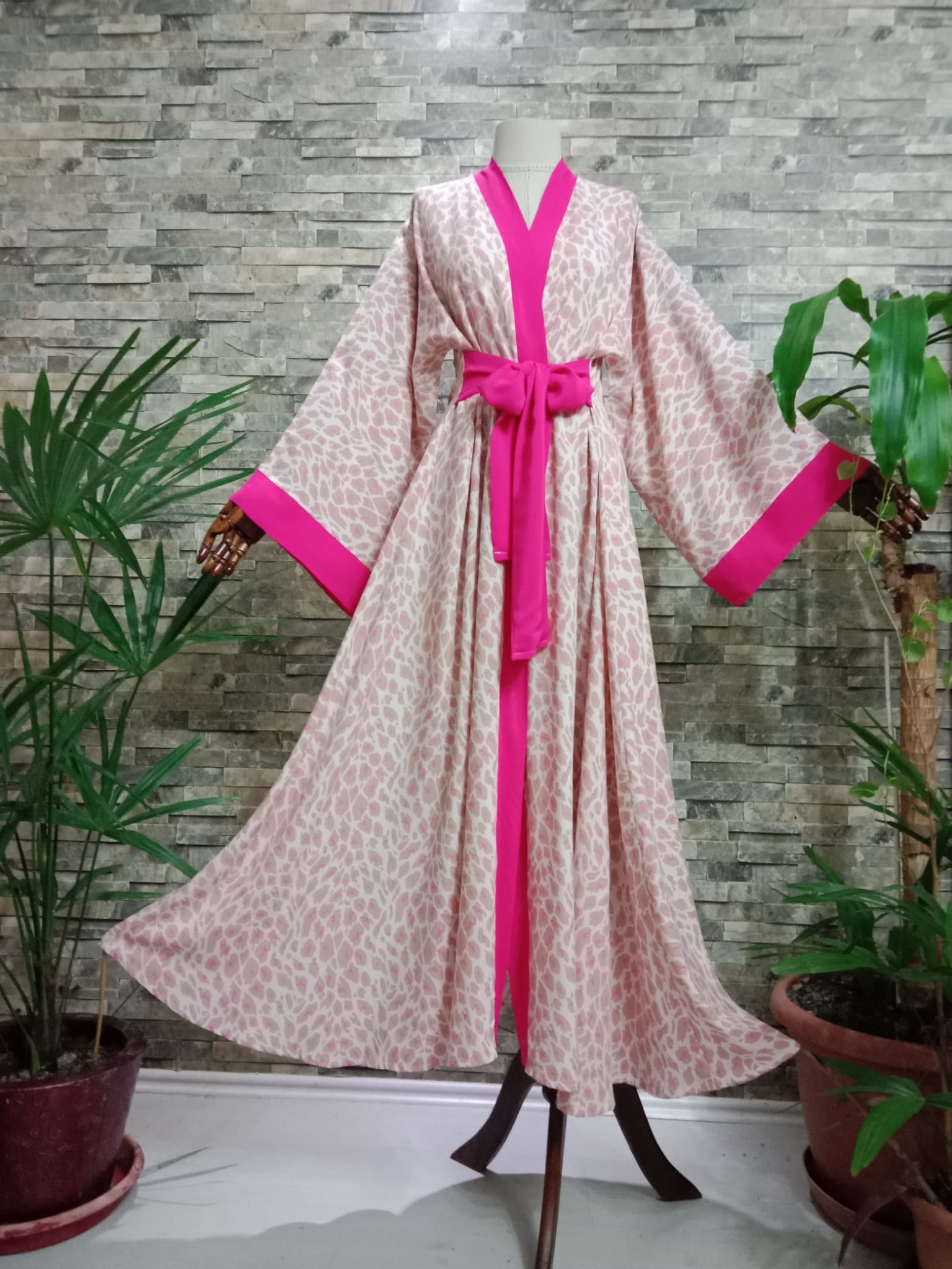 BEDEN: 40 - 46 STANDART B EDENELBİSE BOYU: 140 CMKUMAŞ TÜRÜ: MAROKEN VİSKONRENK: DESENLİKUŞAK: SABİT